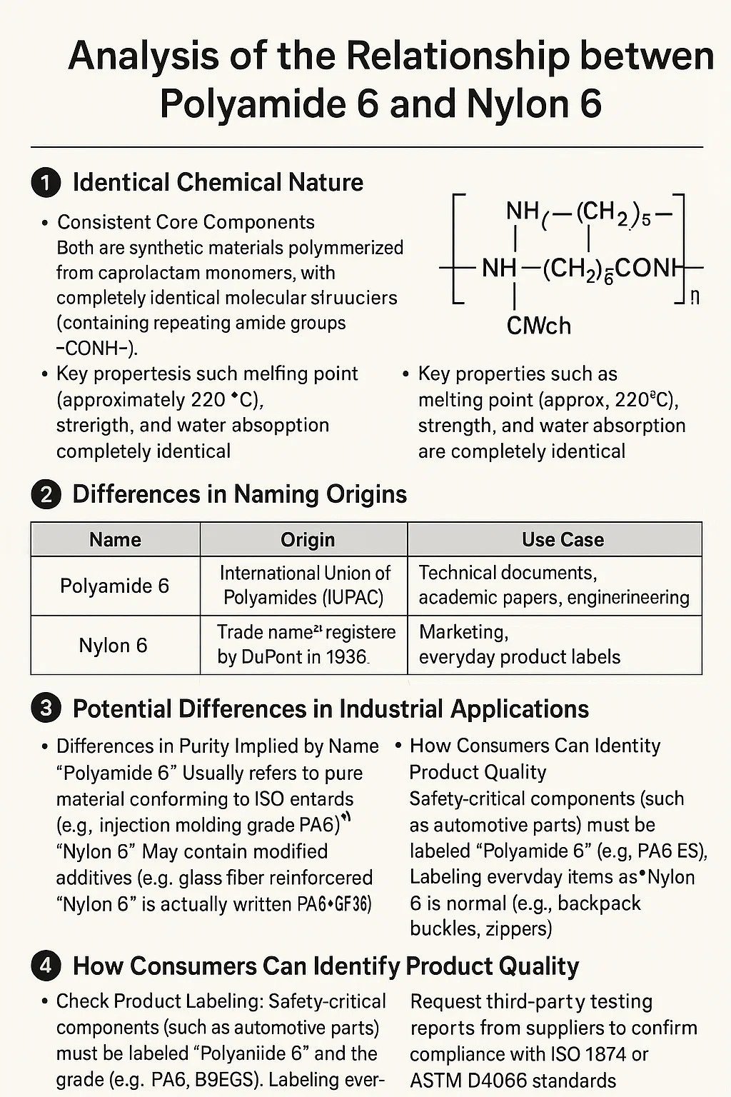 • Componentes centrales consistentes: Ambos son materiales sintéticos polimerizados a partir de monómeros de caprolactama, con estructuras moleculares completamente idénticas (que contienen grupos amida repetidos -CONH-).