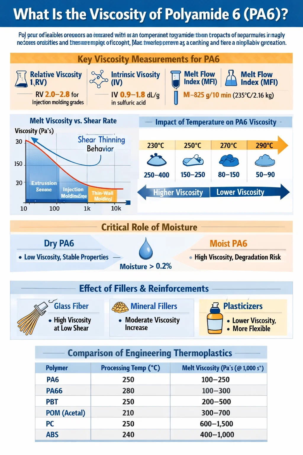 Understanding viscosity is central to every stage of PA6 production and processing — from polymerization control to mold filling behavior. The following sections break down each relevant viscosity type, the factors that influence it, and how to work with it effectively in real manufacturing scenarios.