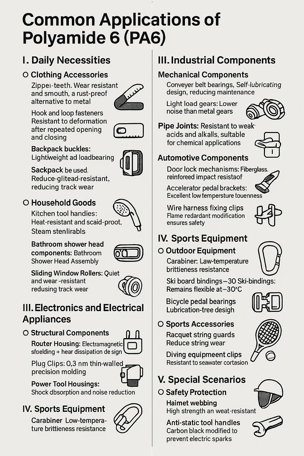 La siguiente es una introducción a las aplicaciones comunes de poliamida 6 (PA6):