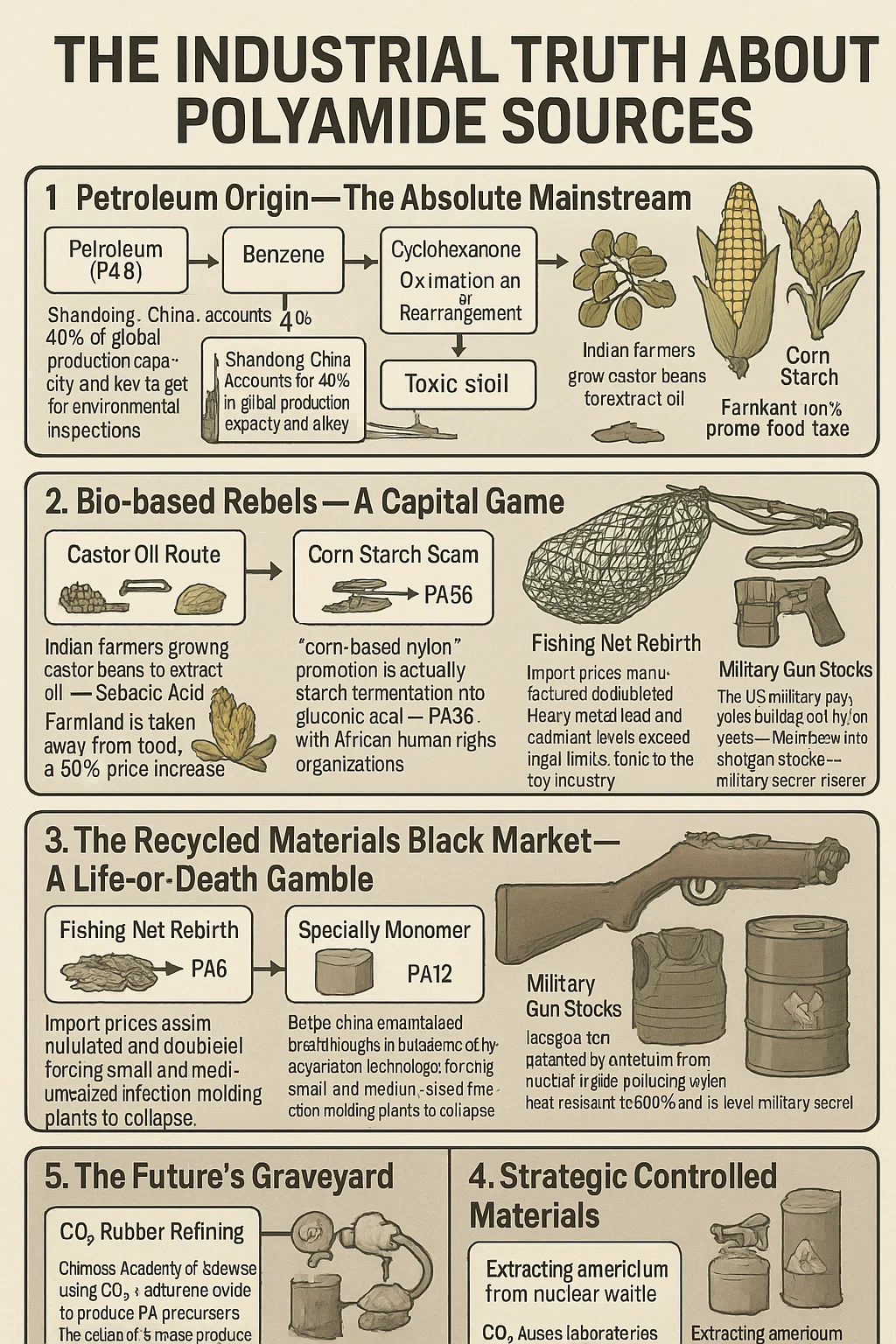 Refinación de caucho con CO2: la Academia de Ciencias de China utiliza óxido de etileno con CO₂ para producir precursores de PA. Los costos de producción en masa del catalizador son bajos, lo que potencialmente subvierte las primeras etapas de la hegemonía petrolera. Extracción de americio de desechos nucleares: los laboratorios estadounidenses extraen actínidos de desechos nucleares mediante polimerización catalítica, produciendo nailon resistente al calor hasta 800 °C y clasificado como secreto militar de nivel SSS.